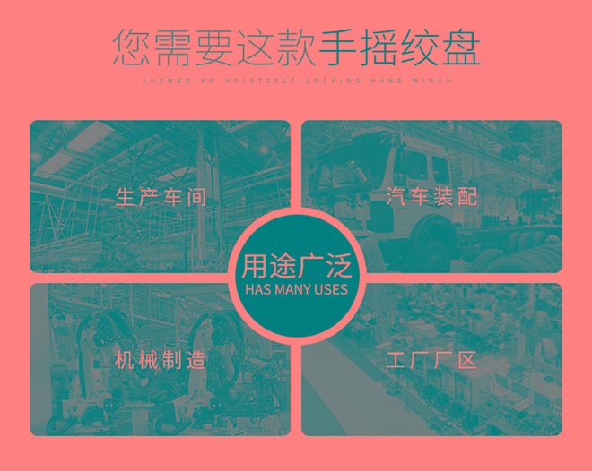 查看詳情產(chǎn)品名稱:自鎖式手搖絞盤;?適用范圍:家庭、移動(dòng)、裝運(yùn)或者倉(cāng)庫(kù)物品牽引、電力設(shè)備更換安裝等;?應(yīng)用領(lǐng)域:本款絞盤為自鎖式手搖絞盤,由絞盤廠家河北東圣吊索具提供,產(chǎn)品廣泛應(yīng)用于港口、電力、鋼鐵、造船、石油化工、礦山、鐵路、建筑、冶金化工、汽車制造、塑料機(jī)械、工業(yè)控制、公路、大件運(yùn)輸、管道鋪設(shè)、邊坡隧道