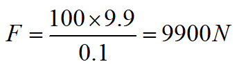 假設(shè)一個質(zhì)量為 100 kg 的物體從 5 米高處落下,停止時間為 0.1 秒: